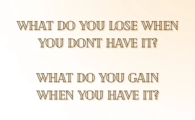 What do you lose when you don't have it and what do you gain when you have it?